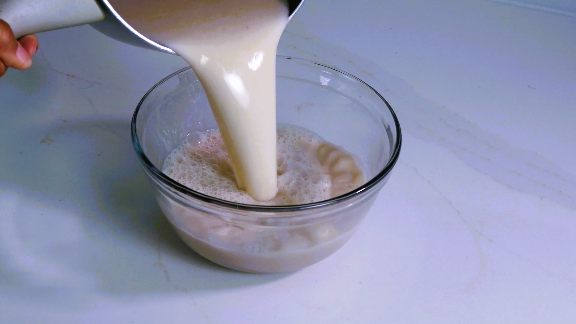 Esta mezcla caliente la coloqué en un bowl de cristal y lo dejeé reposando hasta que alcanzó temperatura ambiente. Después lo llevé a la nevera por 4 horas.